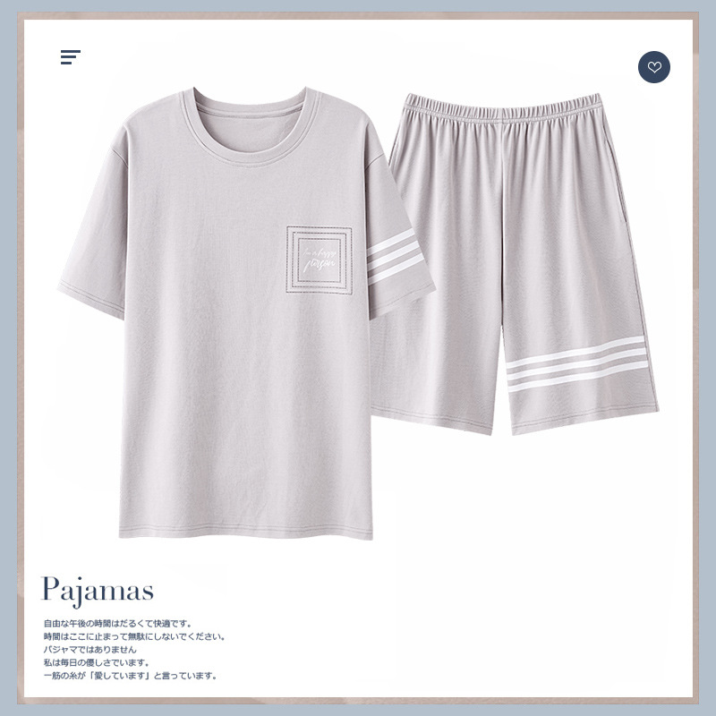 卸売り純綿パジャマ男性夏半袖半ズボンカジュアルシンプル男性薄綿大サイズ家庭服セット
