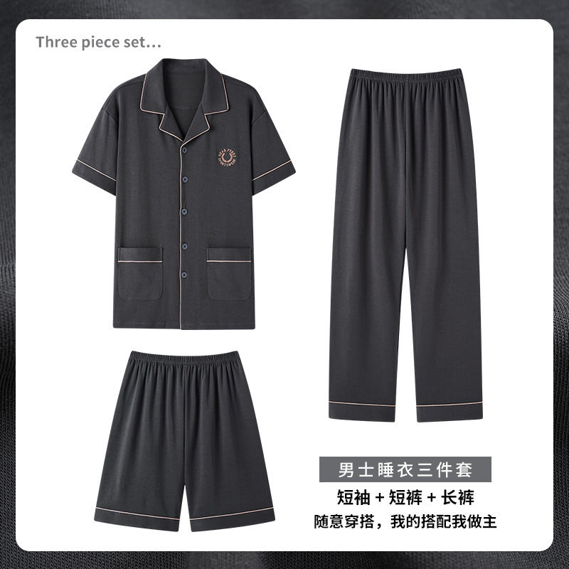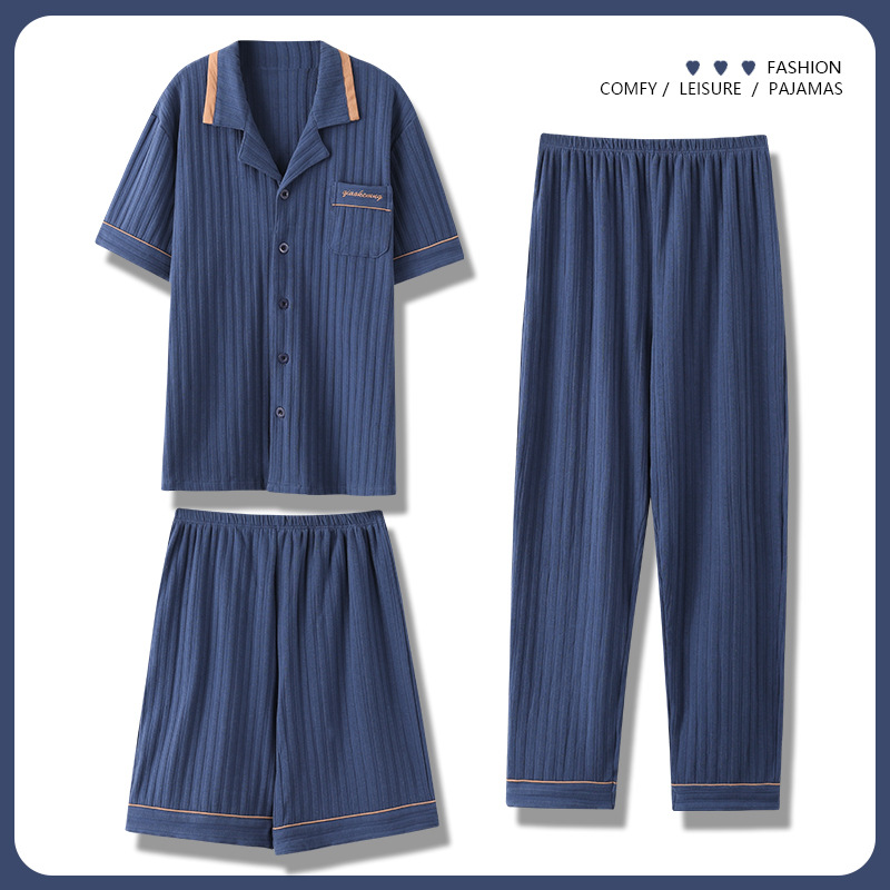 パジャマ男性夏純綿半袖半ズボン三点セットの薄いタイプの男性用の大きいサイズの家庭服の卸売り