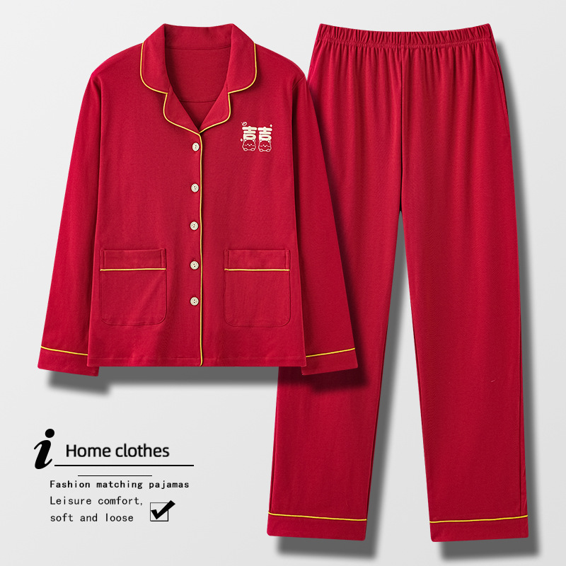 パジャマの女性春秋の純綿の長袖の本命年の新婚の新婦の赤い竜年の秋冬の結婚の大きいサイズの家庭服
