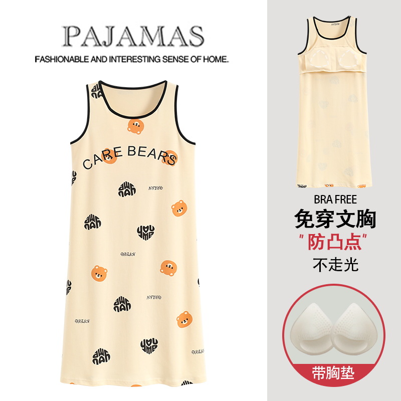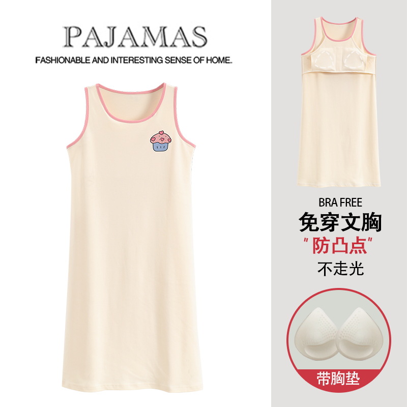 ノースリーブのパジャマの女性の夏の胸のパッド付きの学生のゆったりした綿のストラップのベストのパジャマの夏の薄いタイプの家庭服のスカート