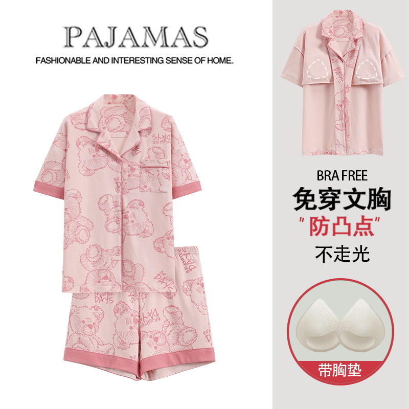 胸パッド付きパジャマ女性夏純綿半袖カーディガンカジュアルかわいい夏は女性の部屋着スーツを着ることができる