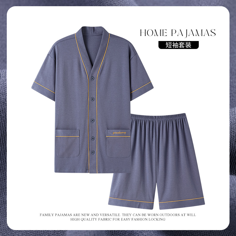男性パジャマ男性夏純綿半袖長ズボンカーディガン