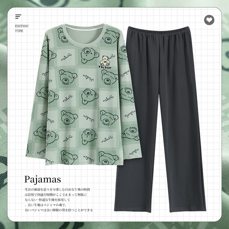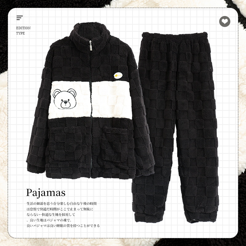パジャマ女性秋冬コーラル長袖漫画セット冬フランネルベルベット厚手保温ホームウェア