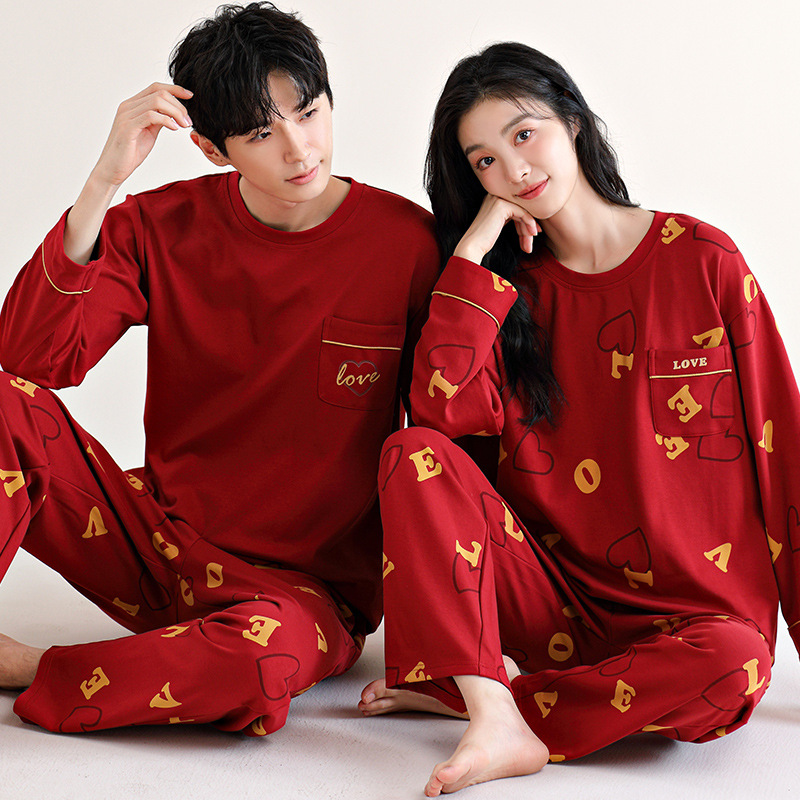 結婚パジャマ新婚カップルスーツ春秋綿長袖赤秋男性双喜カップルパジャマ女