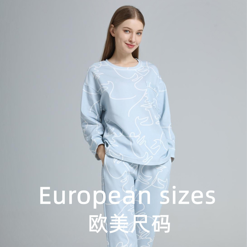 国境を越えてパジャマを卸売りする女性の春秋長袖のズボンの欧米のサイズの丸首の薄いタイプの秋は部屋の服を着ることができます。