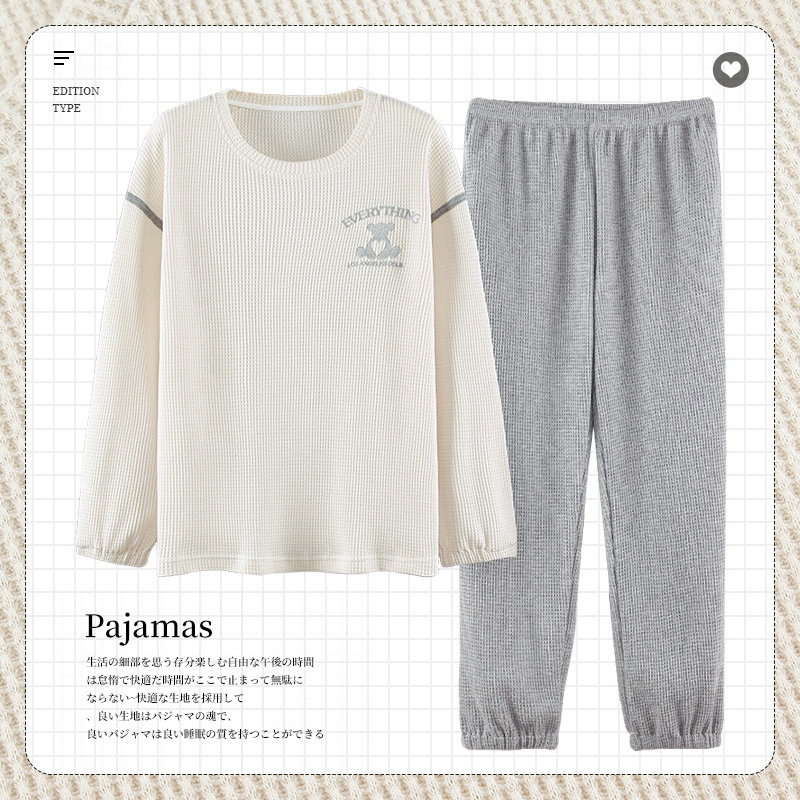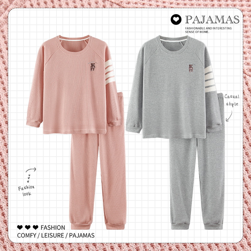 パジャマの女性の春秋綿の長袖のシンプルなスーツのワッフルの夏のスポーツ風は女性の家の服を着ることができます。