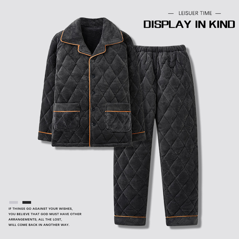 冬のパジャマ男性のサンゴのベルベットの三層の厚いジャケットのフランネルの新しい冬の保温家庭服セット