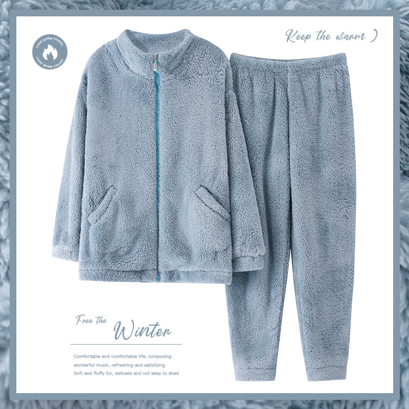 ベルベットパジャマさん秋冬にジッパーとベルベットの大きいサイズの女性の保温フランネルの家庭服セットを厚くする