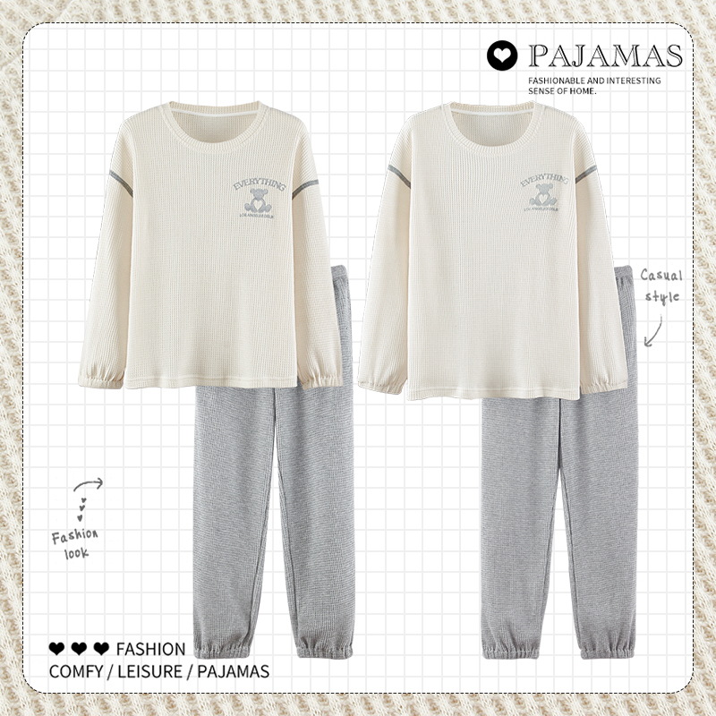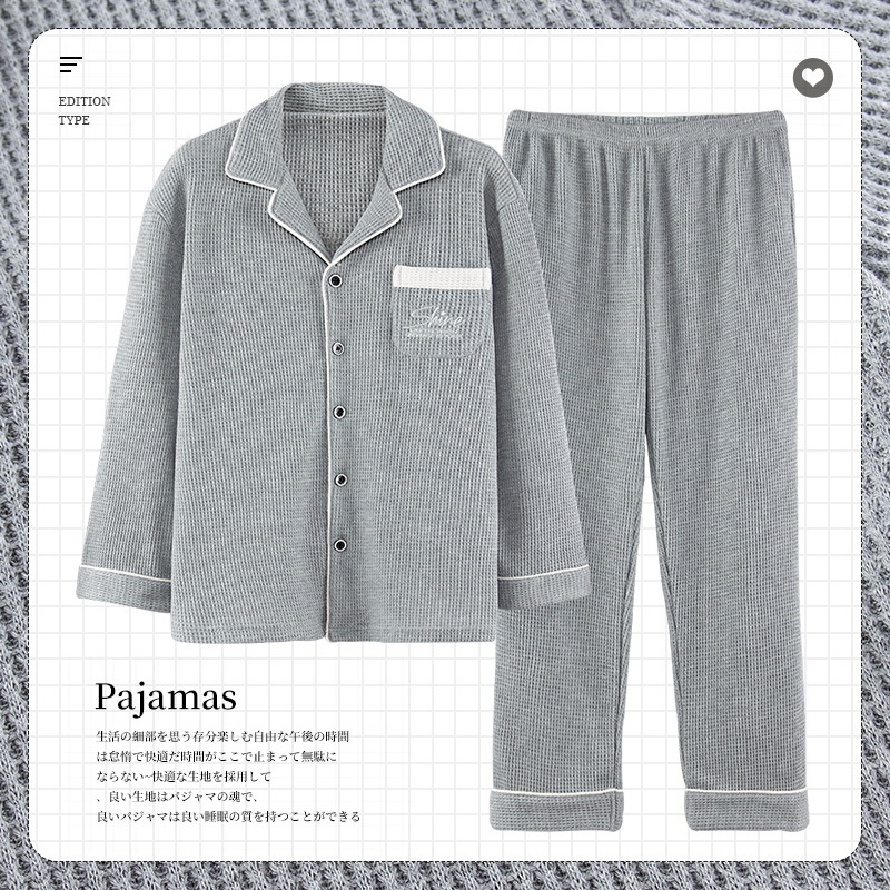 起爆カップルパジャマ女性春秋長袖純綿秋冬天男性カジュアル薄手家庭服セット卸売り