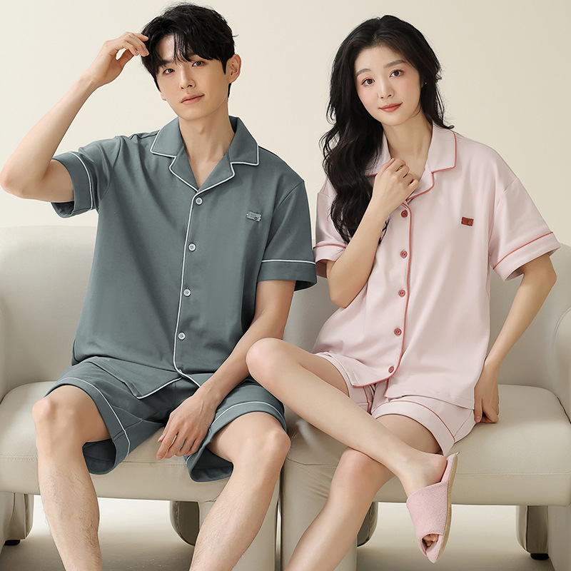 カップルパジャマ2024新型夏男性女性純綿半袖半ズボンシンプル夏大サイズ純綿ルームウェア