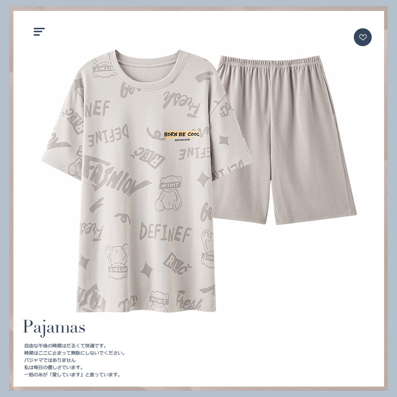 卸売りパジャマ男性夏綿綿の薄い半袖ズボン夏エアコンルーム綿ファッション家庭服セット