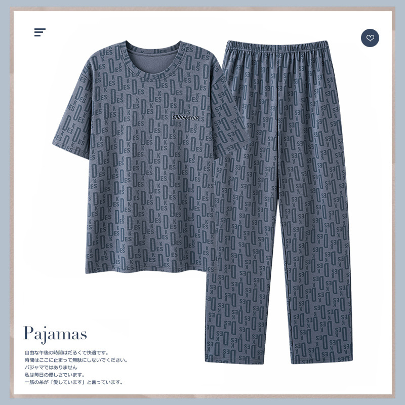半袖長ズボンパジャマ男性夏純綿2024年新作夏薄いサイズ男性ホームウェア