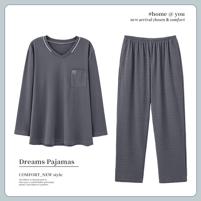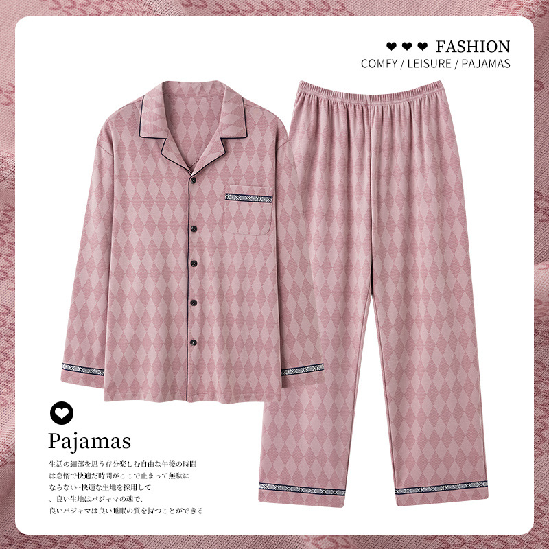 パジャマ男性用春秋韓国版カジュアル純綿新型長袖シンプル高級カーディガン男性用ルームウェア2点セット