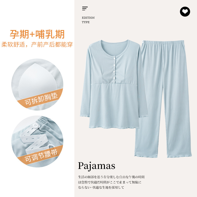 胸パッド付き月子服春秋タイプ妊婦産後授乳パジャマ大サイズ夏カジュアル快適授乳セット
