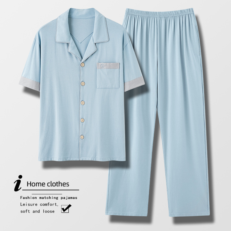 パジャマ男モーデール半袖長ズボン春と秋の薄い純色のカーディガン