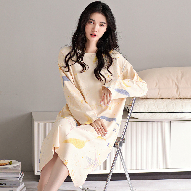 ライブ起爆ワンピースパジャマ純綿薄手長袖夏空調服軽贅沢高級感春秋タイプパジャマ
