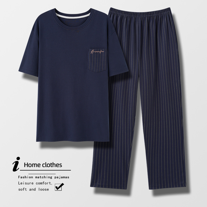 パジャマ男の夏の純綿半袖カジュアルファッション青年男性ホームウェア夏の薄い綿の大きいサイズのスーツ