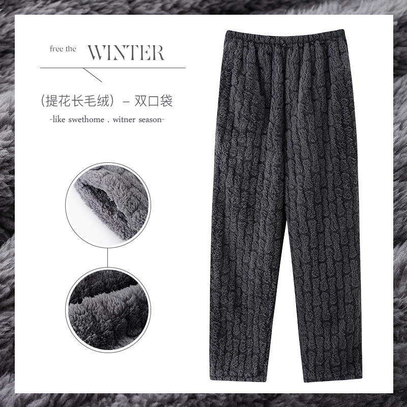 男性の寝ズボン秋の冬の家のズボンのサンゴの綿毛の暖かいズボンのフランネルのベルベットの厚い大きいサイズのゆったりしたズボンの男性
