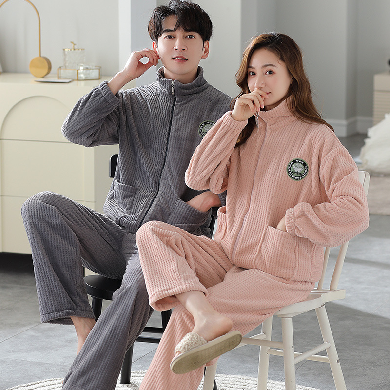 メーカー直販のサンゴのパジャマ男性冬のベルベットの厚いジッパーの男性秋冬保温家庭服セット