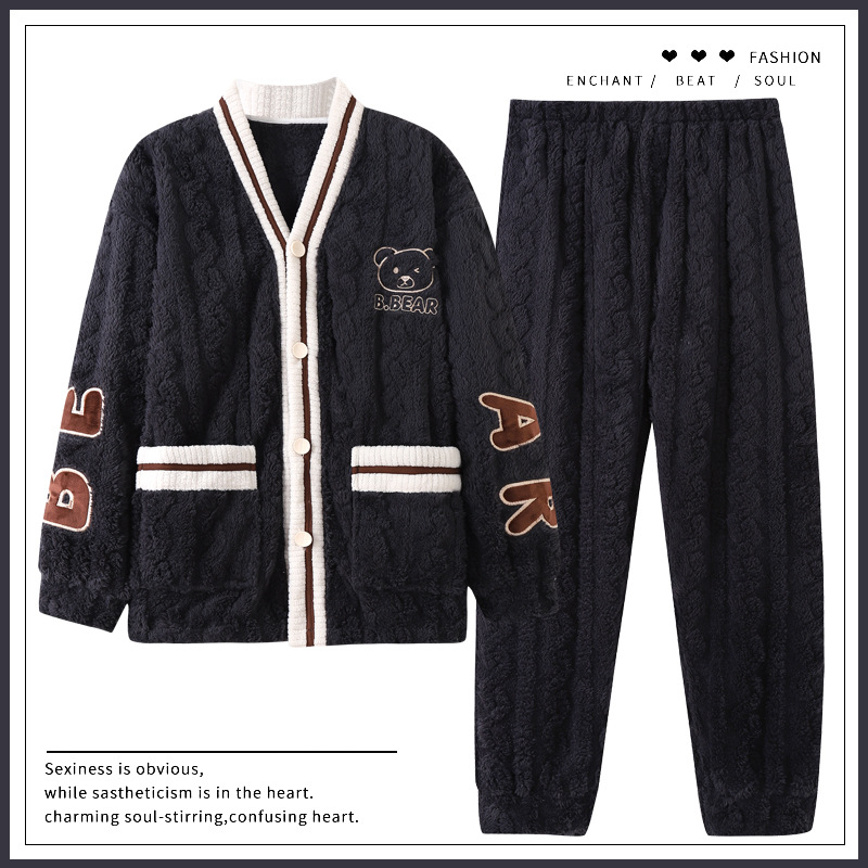 ベルベットパジャマ男性秋冬ベルベット保温フランネル中青年男性冬大サイズホームウェア