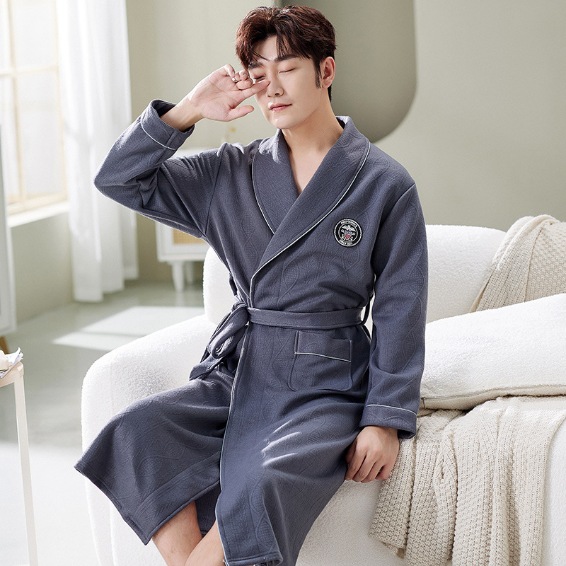 サンドイッチパジャマ男性空気綿厚手純綿朝衿浴衣春秋冬長型薄綿ホテル浴衣