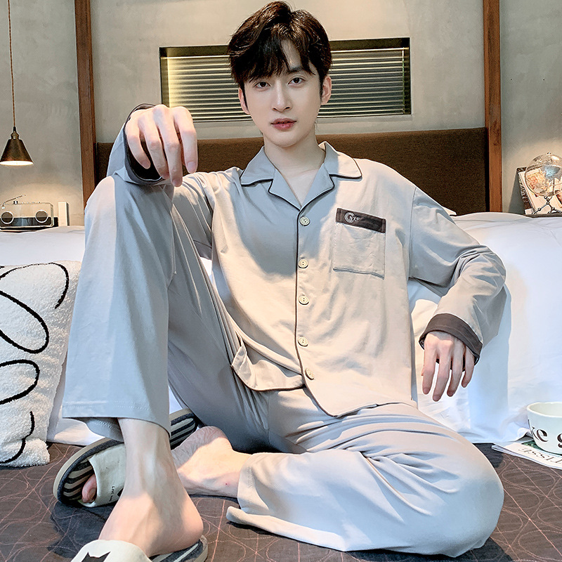 モーダルパジャマ男性長袖春秋大サイズ男性ホームウェア春夏薄着アイススーツ