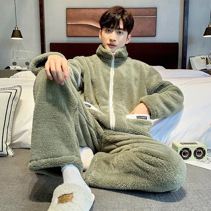 卸売り男性パジャマ秋冬コーラルベルベットとフランネルの厚いベルベット青少年家庭服セット