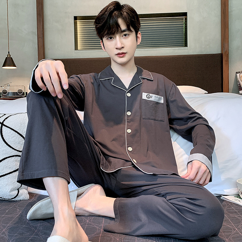 男性パジャマ春と秋の薄いモデルのモーダル長袖秋の氷の糸の涼しさの大きいサイズの部屋の服の男性のスーツの卸売り