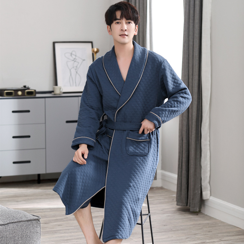 男性用の寝衣秋冬タイプの厚い空気綿の中層バスローブ春と秋の純綿の薄いタイプの日本式ホームウェアのパジャマ