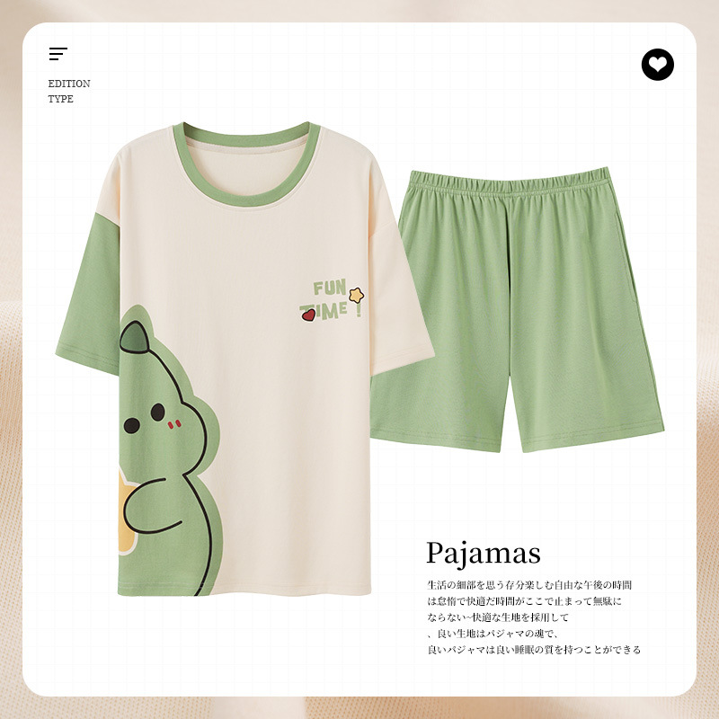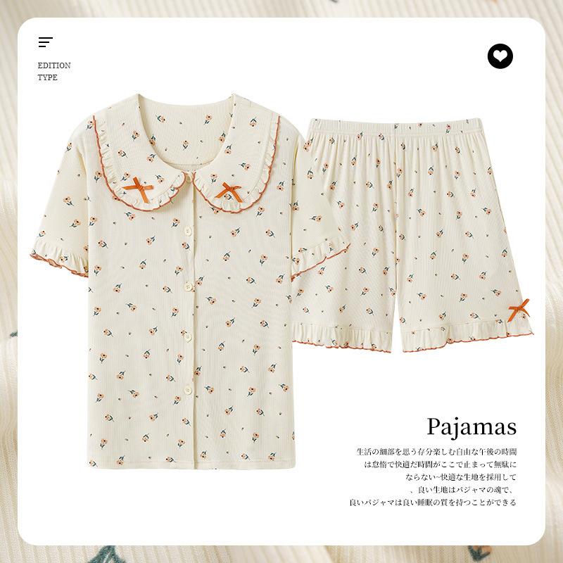 パジャマ半袖女性夏モーダルカーディガン甘いプリント韓国版女子学生家庭服セット夏卸売り