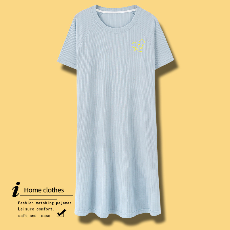 夏のパジャマの女性の夏は綿の薄い半袖のワンピースのパジャマの長いタイプの家の服の女性の夏の家のスカートの卸売りをまねます。