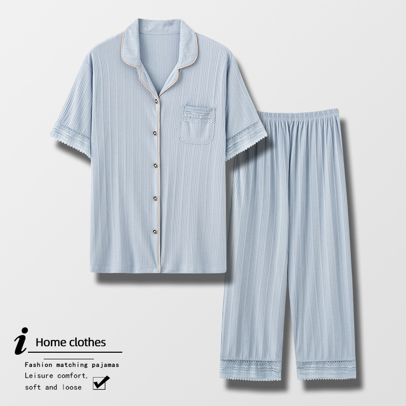 モーダルパジャマ女性夏半袖カーディガンシンプルな大きいサイズ高級感夏の外着女性の部屋服セット夏