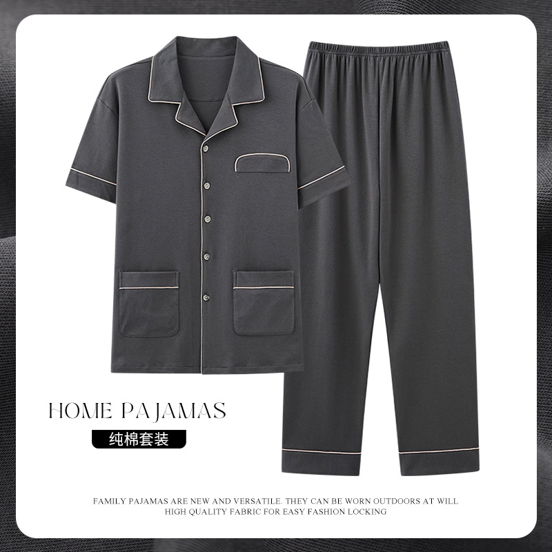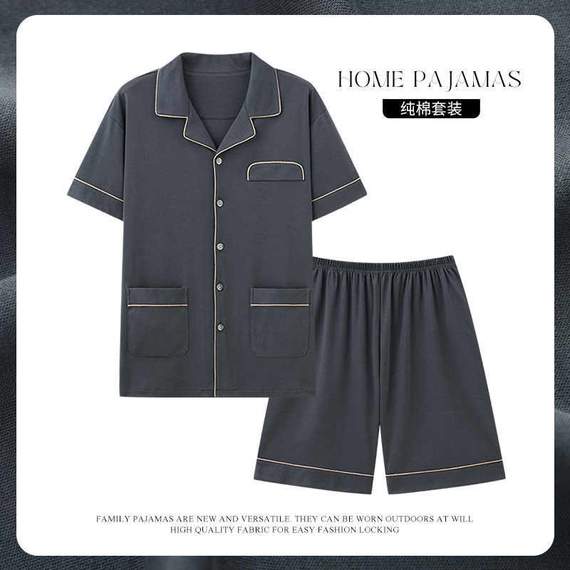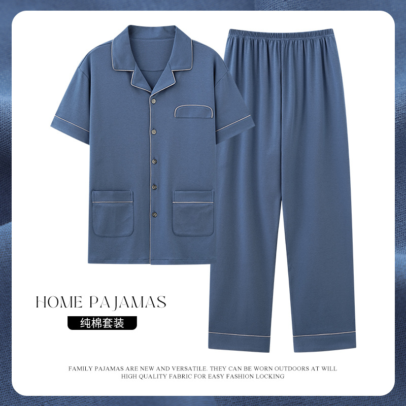 青少年パジャマ男純綿夏半袖夏大サイズ外着高級感男性家庭服セット夏