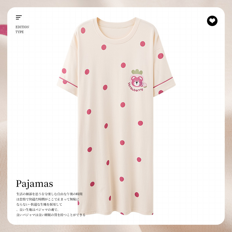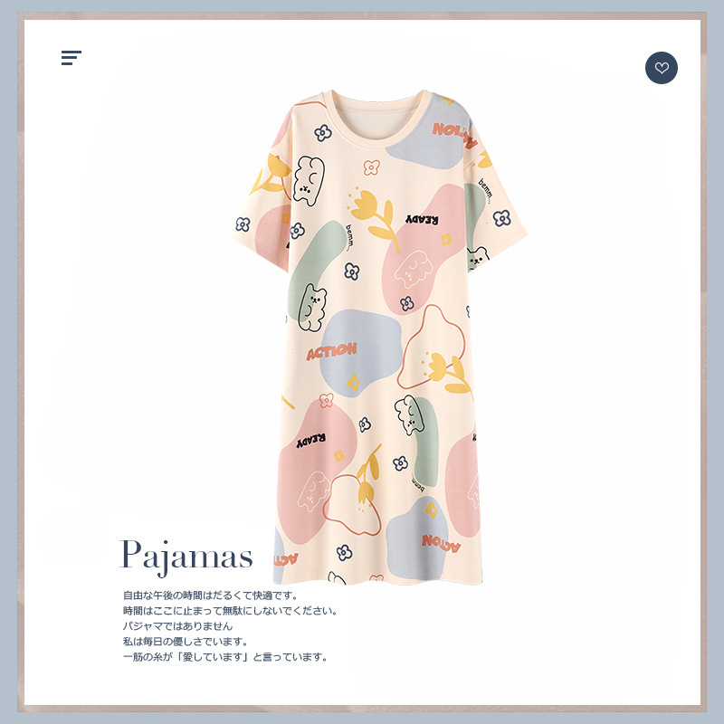 女性の寝スカートの夏の純綿の半袖はゆったりしています。