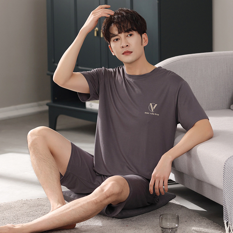 夏の男子のパジャマの夏のモーダルの半袖の新型の男性のシンプルなカジュアルな夏の新型は部屋の服を着ることができます。