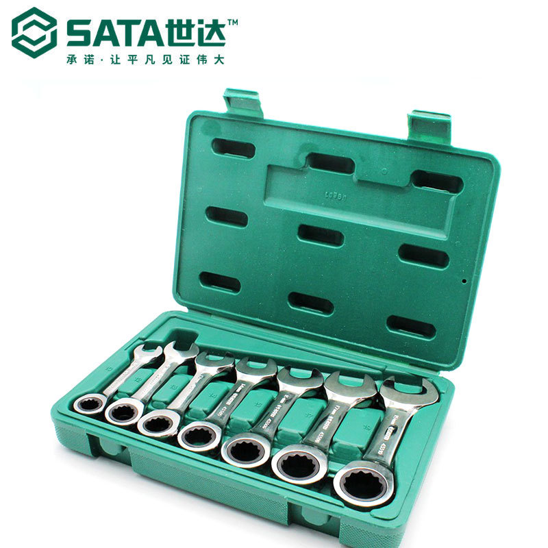 世達汽修汽保工具短速レンチ7点セット全研磨快速レンチセットラチェット付き09034