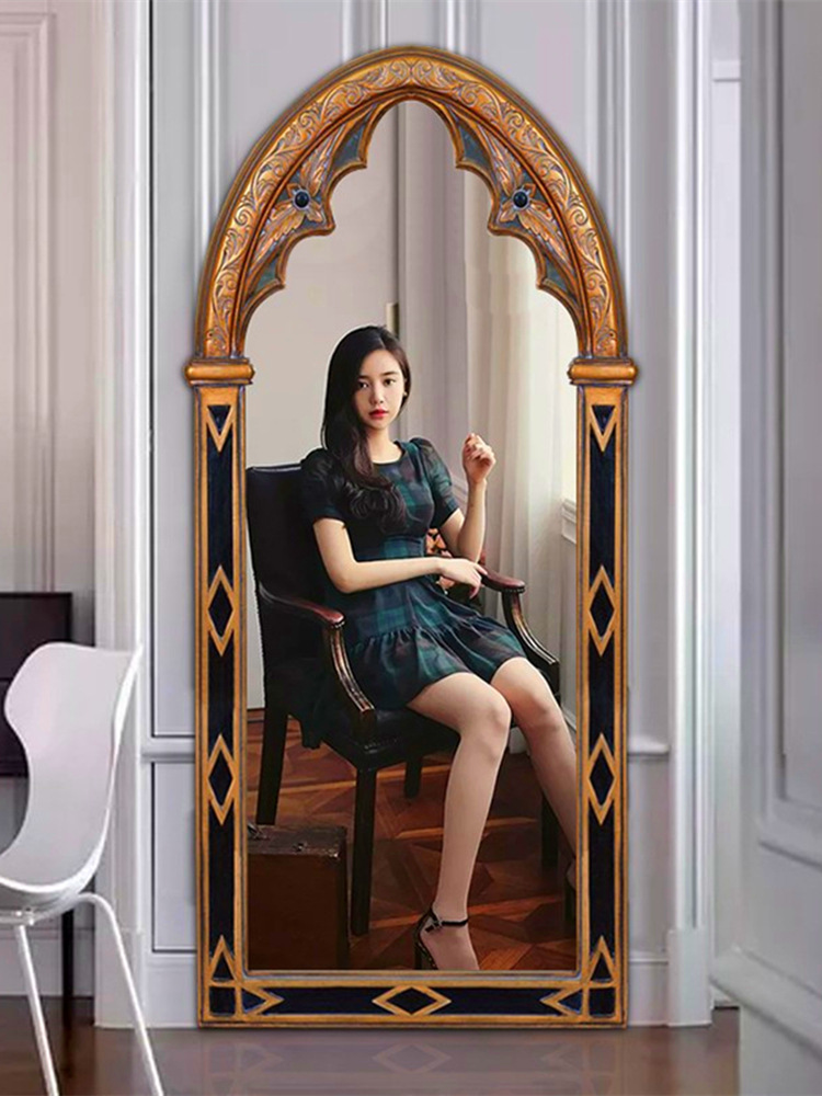 レトロ全身鏡寝室アメリカネットレッドinsヨーロッパ風彫刻鏡家庭用玄関フランス式着地鏡