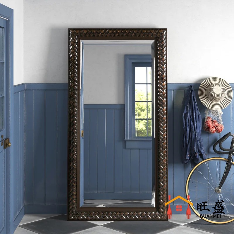 ヨーロッパ式全身鏡レトロな床置き鏡家庭用服装店のフランス風彫刻試着鏡寝室のアメリカ式服装鏡