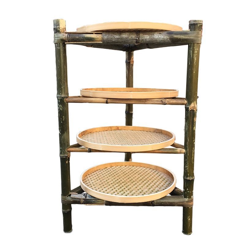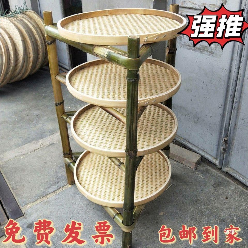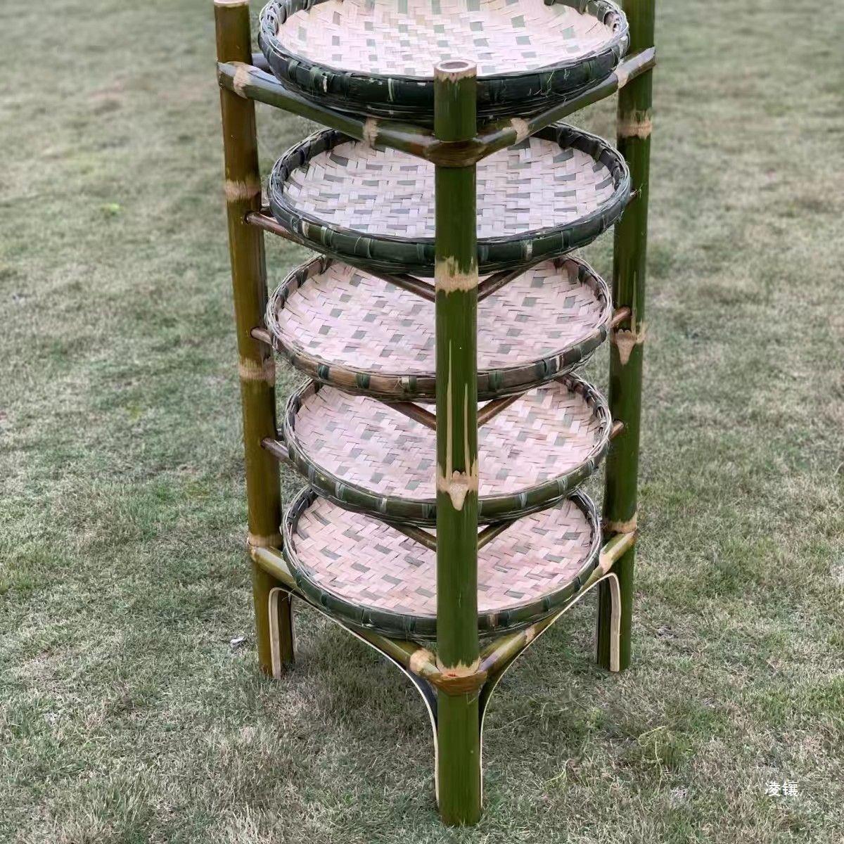 レトロな手作り竹棚楠竹料理棚ネット赤市井鍋料理棚箕棚竹家具竹三脚