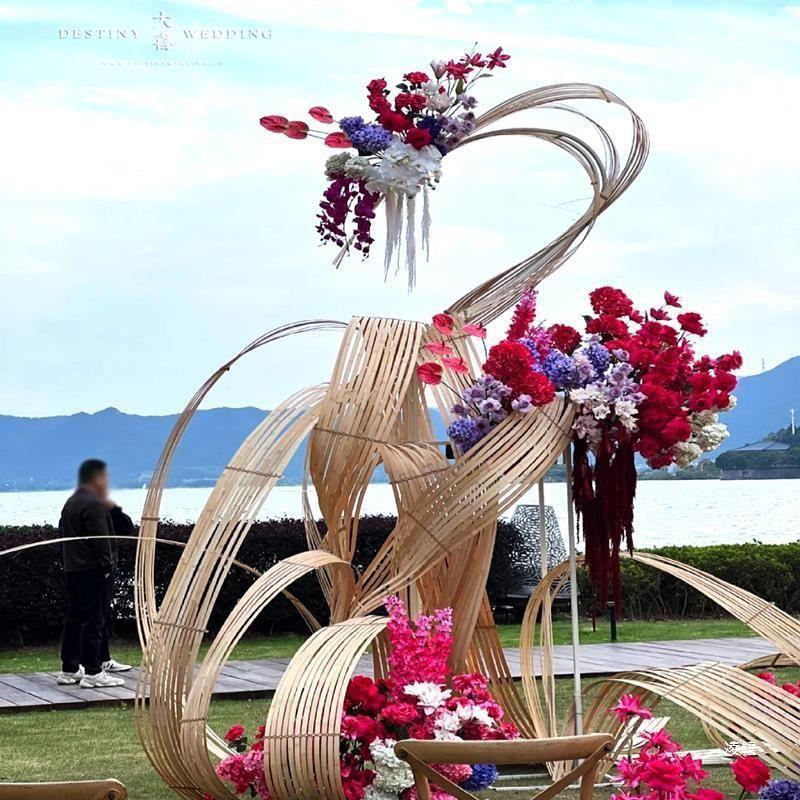 手作りの竹の条編みの結婚式の現場は生け花の装飾用品を手配します。