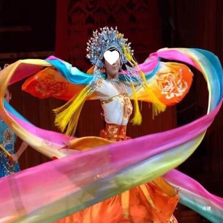 彩の絹織物の飛天舞の長い絹糸の李玉剛の本当の糸の七色の帯は敦煌の水の袖のダンスの劇の道具を振ります
