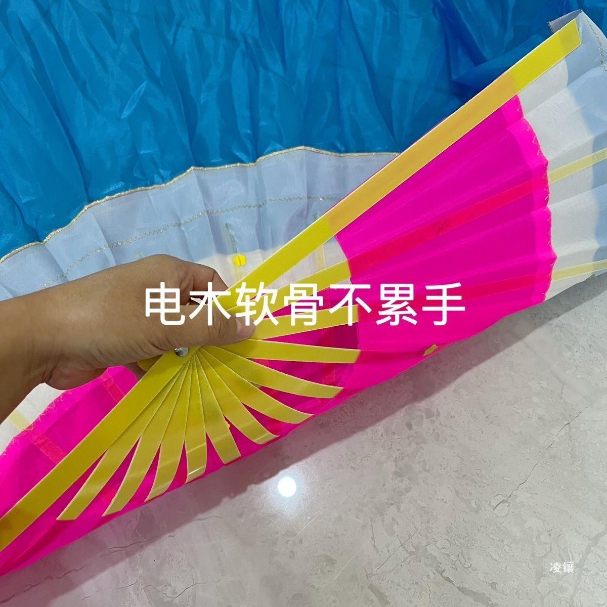 広場舞の長い扇子のダンスの長い絹織物の扇子の三色のグラデーションの長い扇子のヤンコの歌の長い子供の扇子の長い炎の扇子