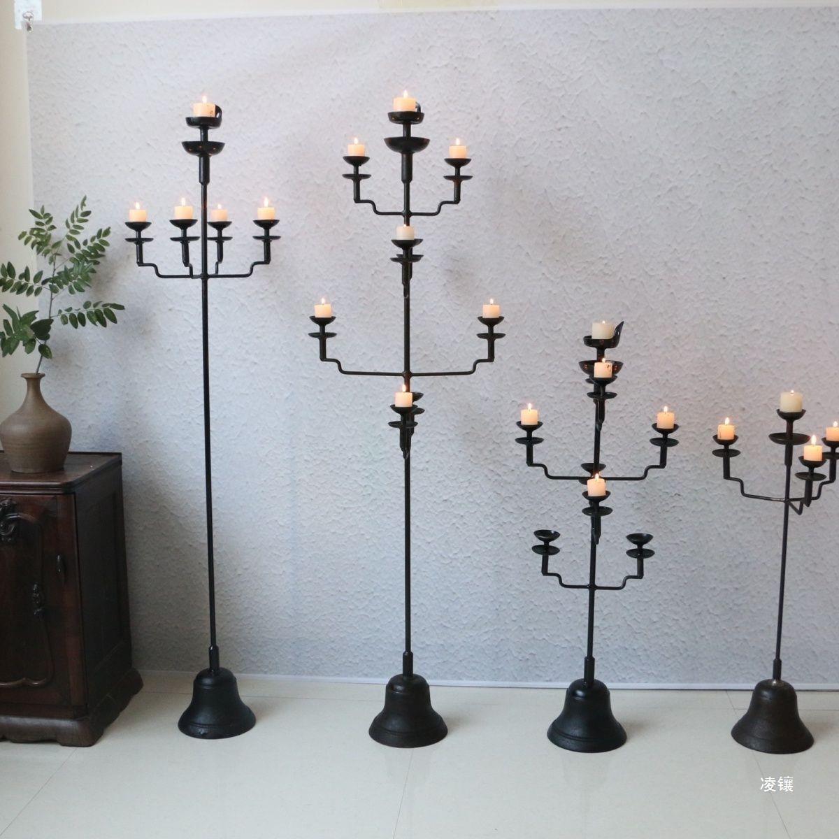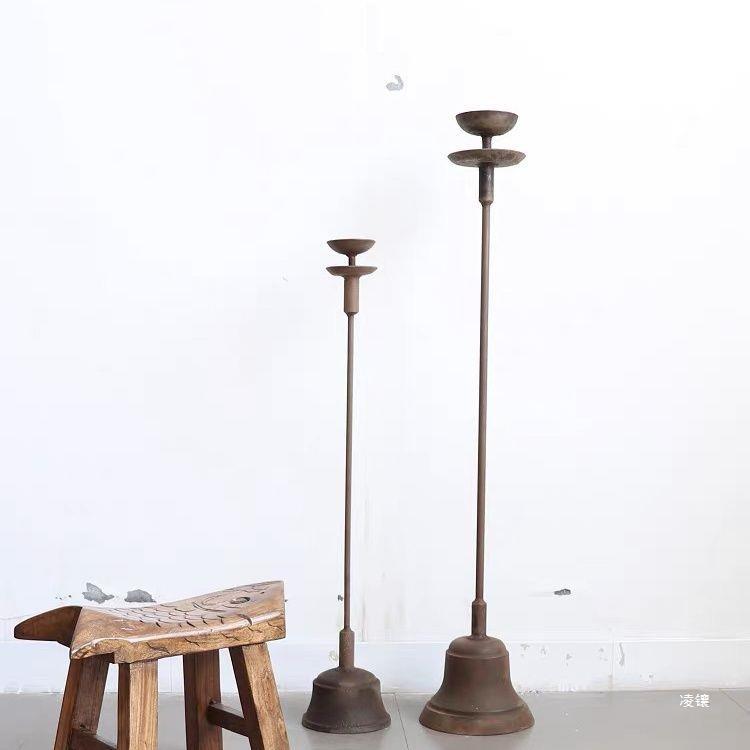 19レトロな鋳鉄の燭台のランプの置物は古い中国式の鉄芸の民俗の禅意の民宿の茶室のホテルの床の明かりに似ています。