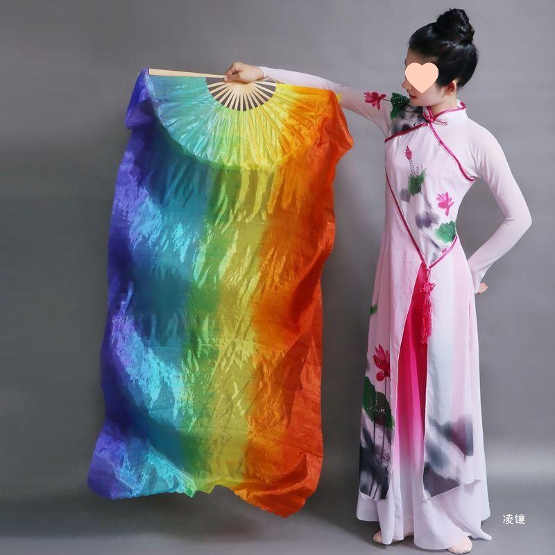 シルクダンス扇子両面グラデーション一面浅緑一面浅粉ダンス扇子広場舞ヤンコ扇子