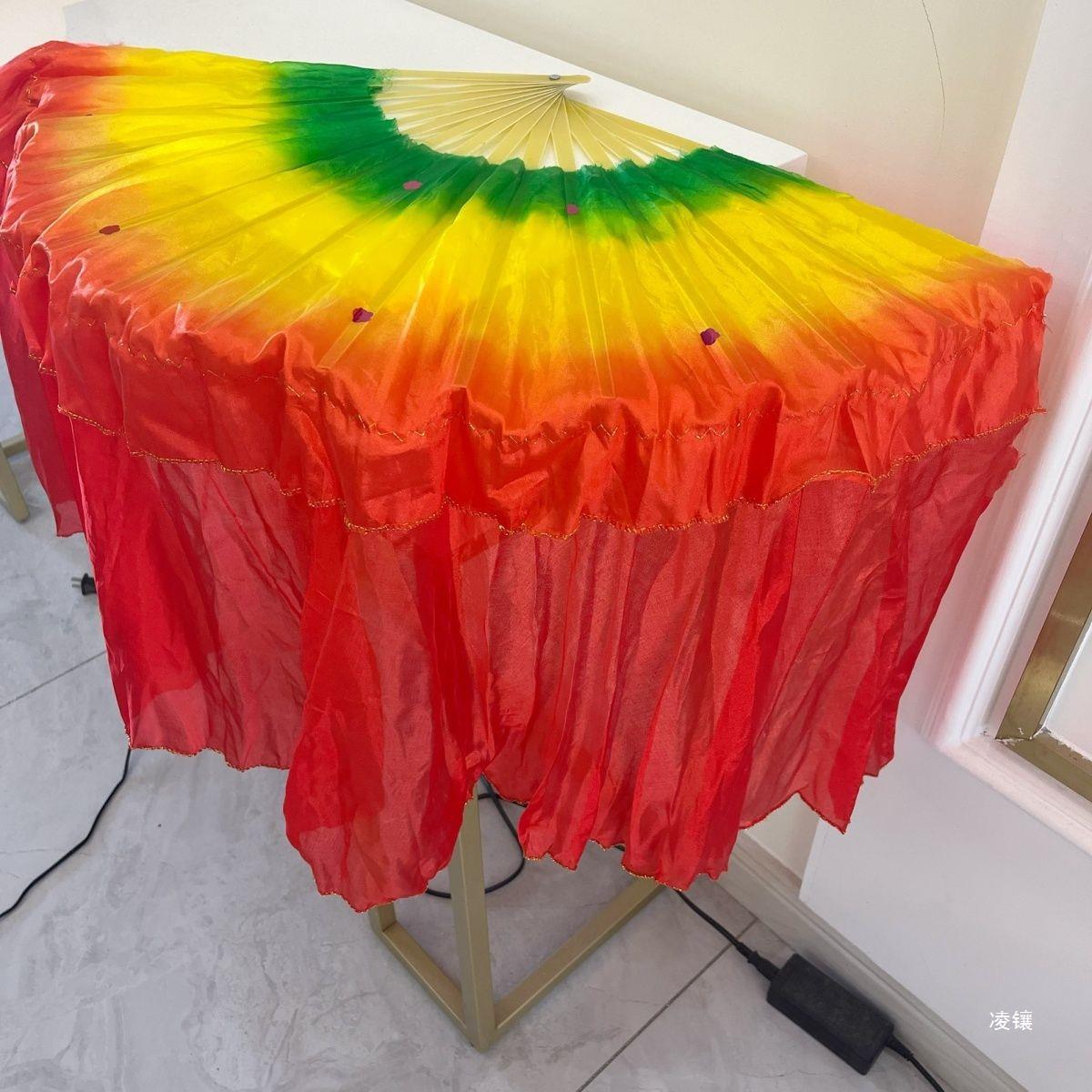 延長シルク一尺二緑黄紅浮頭胶木軟骨四面光扇骨出頭35センチヤンコ扇彩扇