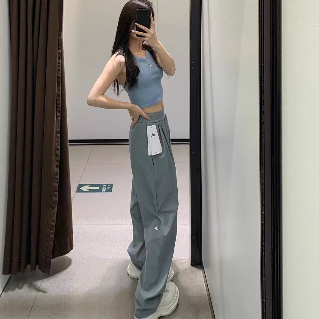 ALO 反射ロゴカジュアルスポーツパンツ女性のプリント弾性ウエスト織ワイドレッグパンツルーズ