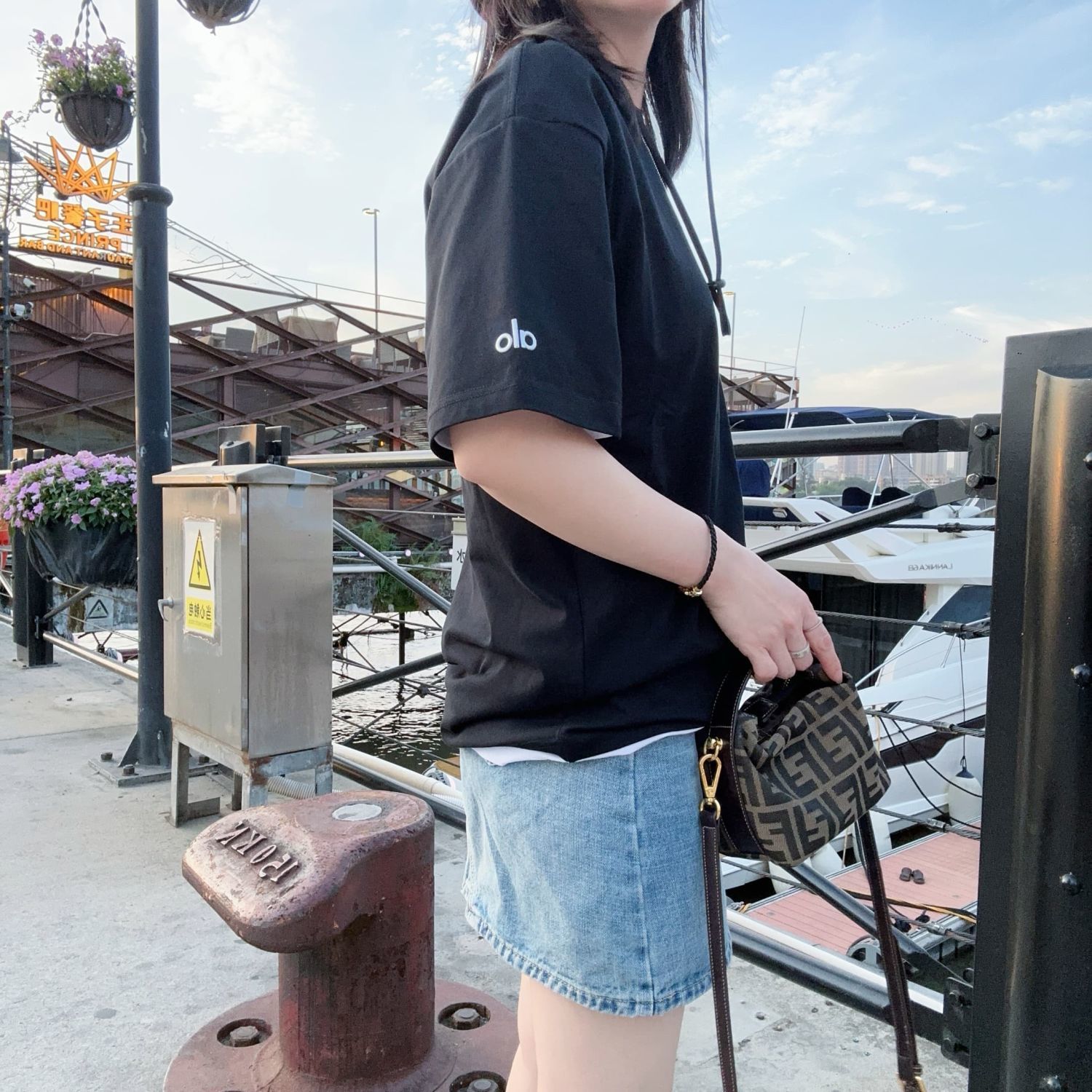 ALO ベーシックピュアコットン半袖 Tシャツレディースショート 2025 夏韓国スタイルルーズ Tシャツラウンドネックスリムソリッドカラートップ