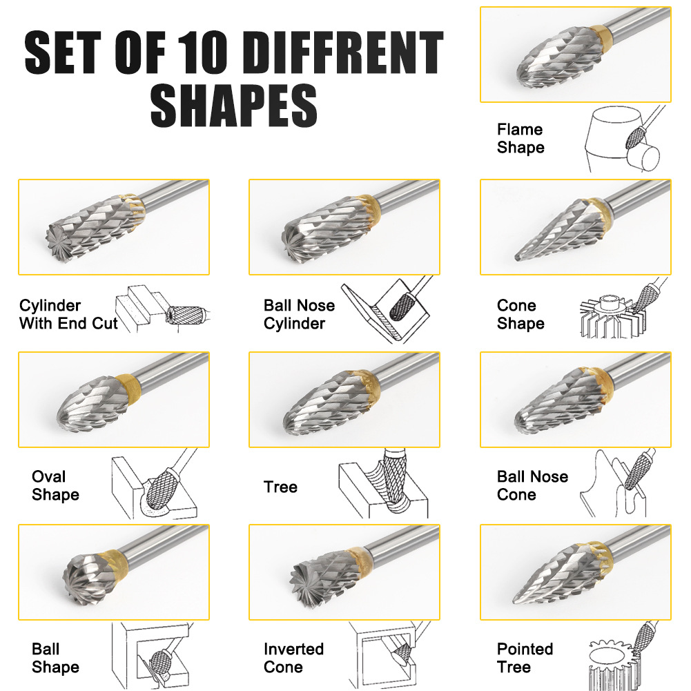 10本入二槽回転やすり磨きヘッド3 × 3mm超硬タングステン鋼研削ヘッド回転やすりフライス