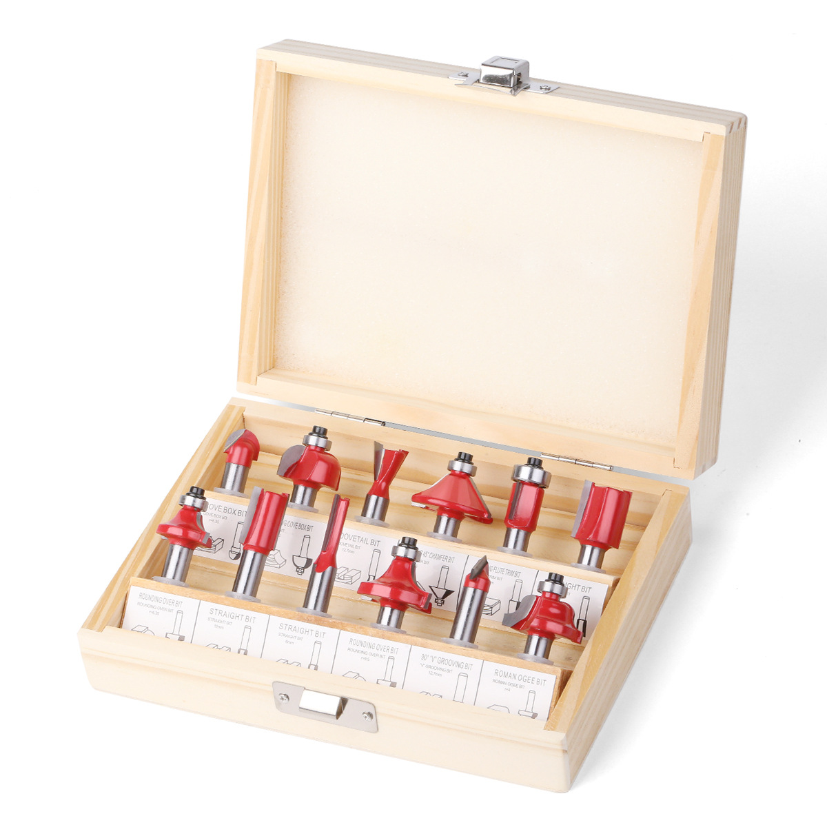 12点セット1/4柄木工フライスセットトリミング機ヘッド電気木フライス彫刻機フライストリミング刀15PC