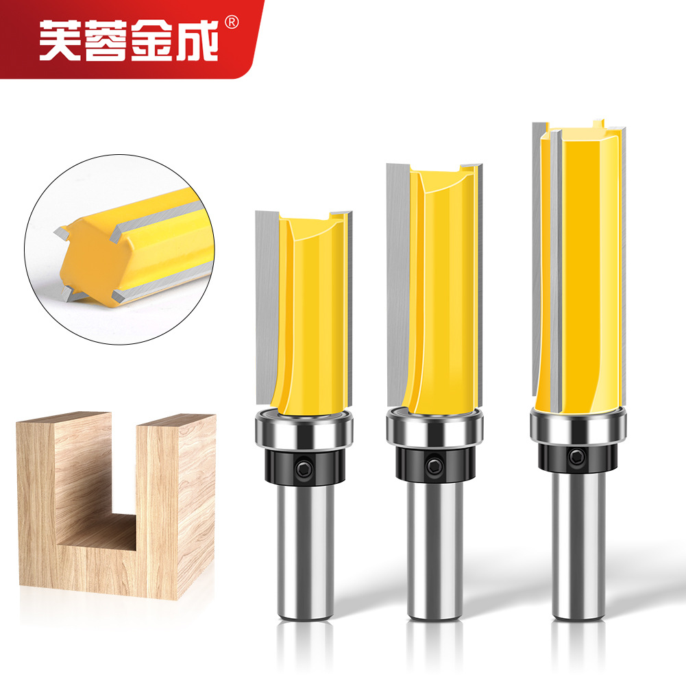 1/4ハンドル6ハンドルベアリングトリミングカッター木工フライスカッターベアリングトリミングカッター付き両刃ストレートカッター木工フライスカッター